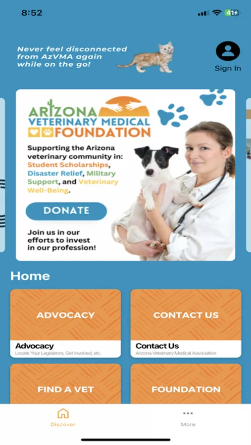 The Arizona Veterinary Medical Association (AzVMA) app connects you to your veterinary community. The app provides easy, direct and convenient access to member services including renewing your membership, registering for continuing education programs, accessing resources and publications, and keeping you current on the latest information that affects the practice of veterinary medicine in Arizona.