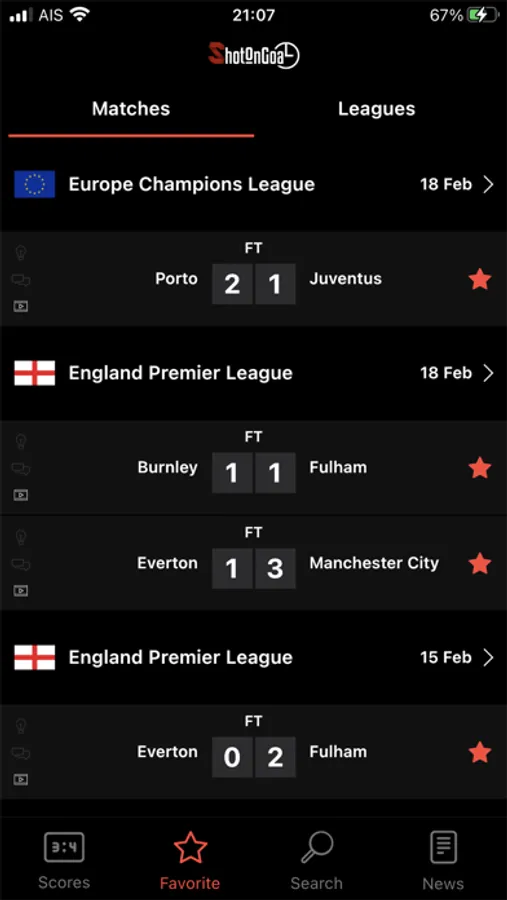 Can’t find your favorite matches? Don’t worry we got you covered. Put a star on your favorite matches and see them all on the same screen.