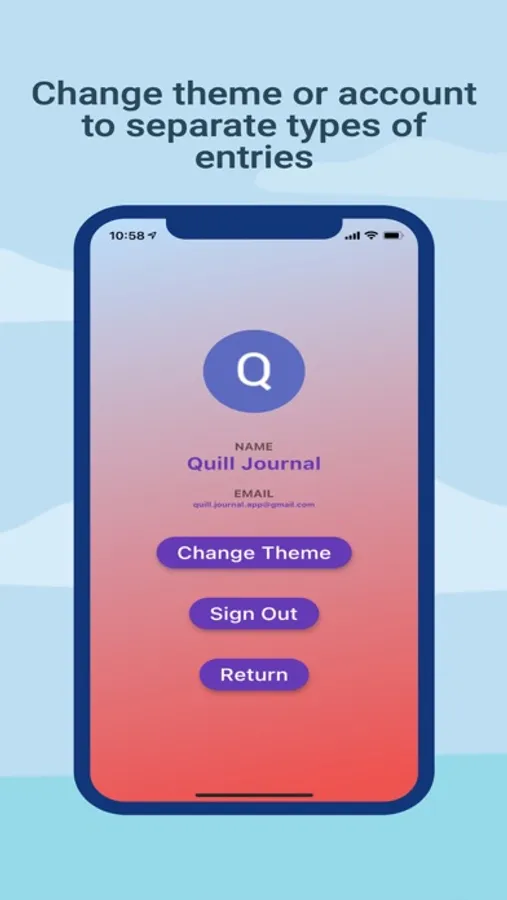 Quill Journal is a simple, intuitive journaling app, built for everyone! Log in with Apple, or with your Google account and start journaling today! Sign out or change accounts to keep entries secure, and tap your account photo to change the app theme based on your mood!