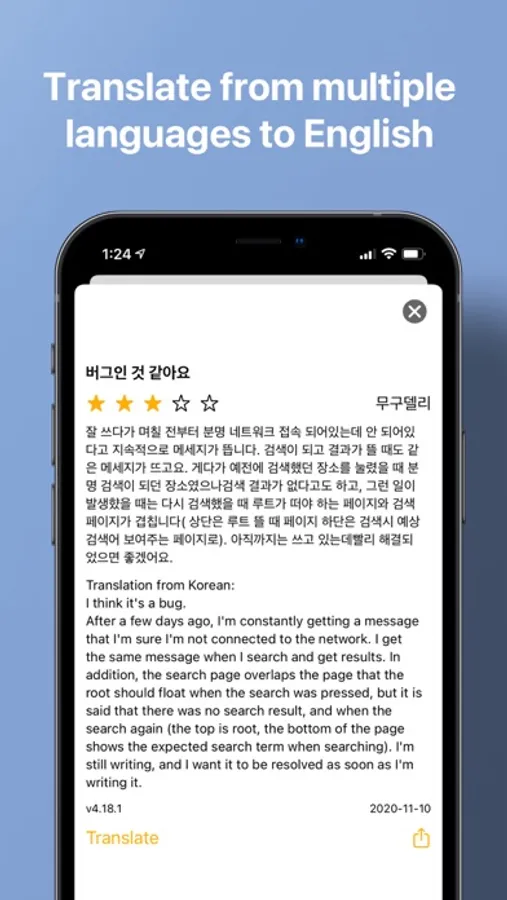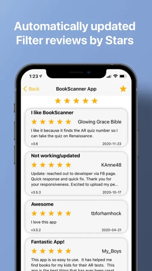 Monitor My Reviews allows developers and podcast creators to search the App Store and Podcast App for reviews. My Reviews will monitor in the background for new reviews, and alert when they are submitted. You can filter by rating, translate reviews to English, and use the sharing mechanism to show off those 5-star reviews. Add widgets to your iPhone or iPad to be reminded of recent reviews.