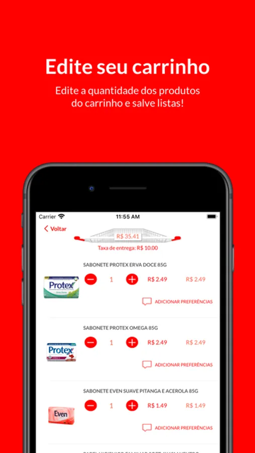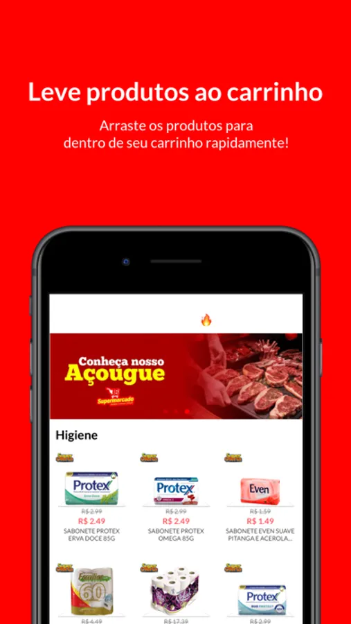• Adicionar produtos no seu carrinho com um simples tocar e arrastar.