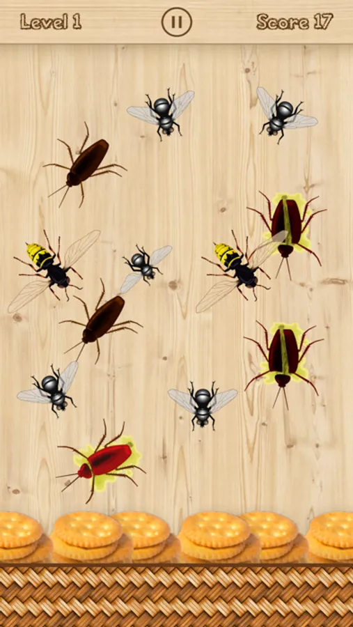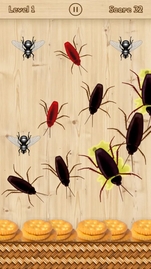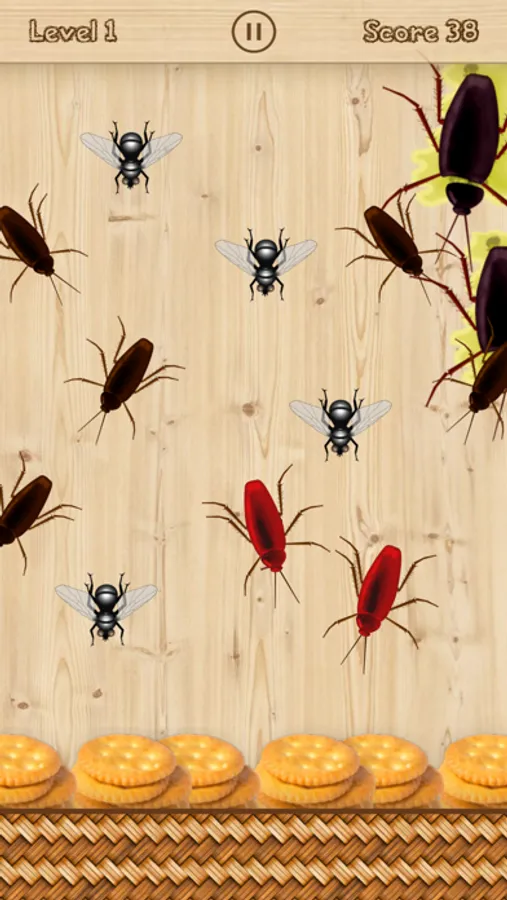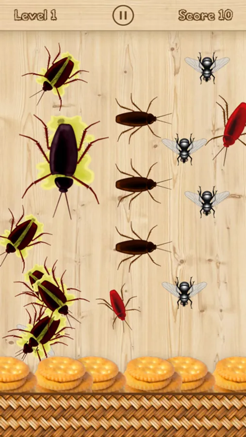 Destroy all cockroaches and flies without letting them eat all the cookies. Beware of wasps, they must not be touched.