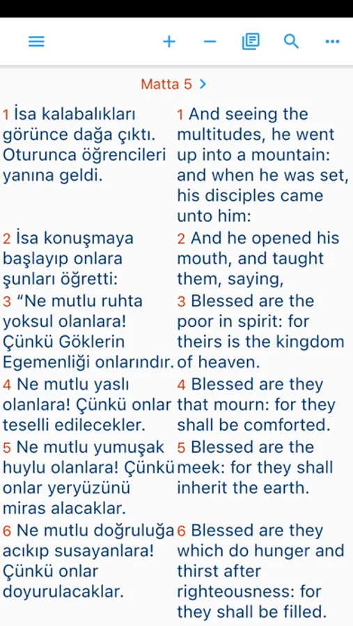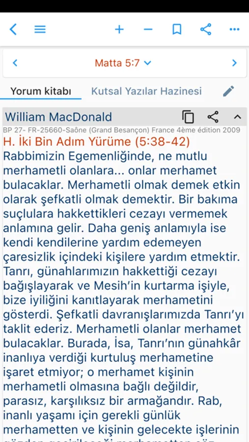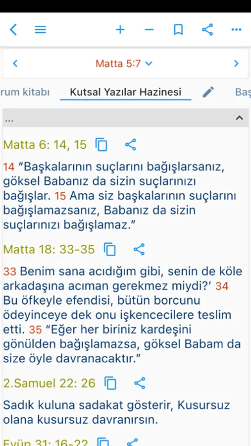 Türkçe Kutsal Kitap Çalışma Merkezi kullanıcıların Kutsal Kitap'ı Türkçe okumaları ve içerikte aramalar yapabilmeleri için tasarlanmıştır. İleri düzey arama özelliklerinin yanında, Türkçe Kutsal Kitap Çalışma Merkezi, tanınmış birçok yazarın yorumlarını da, ayet ayet okuyucularına sunmaktadır. Bu uygulamayla okumak istediğiniz ayete bir dokunuşla erişip, ister yazarların yorumlarını, isterseniz de Kutsal Kitap Bilgi Hazinesine (TSK/KBH) ulaşan bağlantıları veya ayet referanslarını inceleyebilirsiniz. Kullanıcılar diledikleri takdirde, kendilerine dokunan ayetleri sosyal medya aracılığıyla da paylaşabilir, ayetleri istedikleri renklerle işaretleyebilir ve sık kullanılanlara ekleyebilirler.