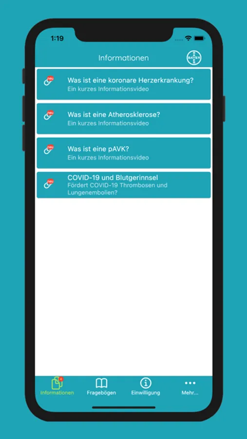 - Möglichkeit einer Kontaktaufnahme mit BAYER Mitarbeitern aus Medical Information