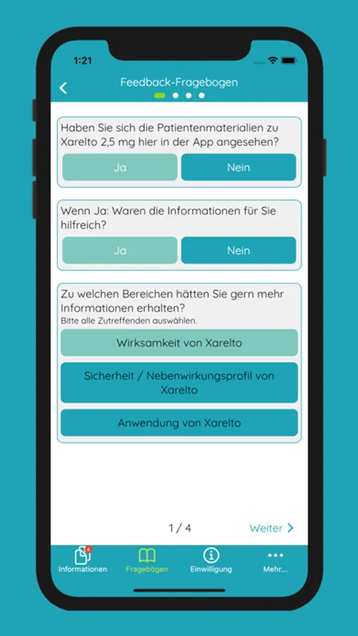 Des Weiteren haben Studienpatienten die Möglichkeit, über einen Feedbackbogen zurückzumelden, wie Sie die Funktionalitäten der App bewerten.