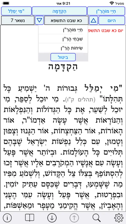 Haye Moharan and Shivhey Haran and Sihot Haran about Rabbi Nahman miBreslev with search option and bookmarks and learning program.