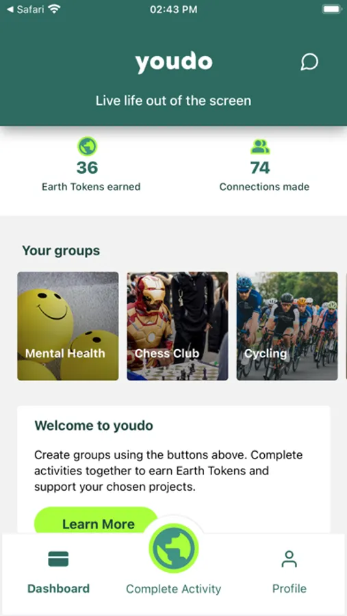 The youdo application helps people connect with each-other through the activities they enjoy and provides all the tools (groups, chat, polling) needed for people to ‘do and play’ together. This could involve a game of 5-a-side, a group meditation, Book Club, a game of chess or a walk and talk in the park.