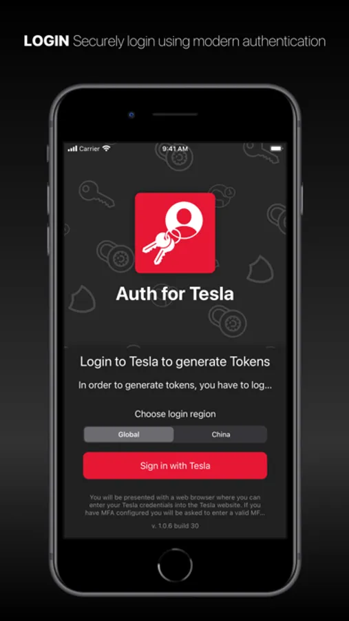 At no point in time is any information shared with the developer - your username and password is sent directly to Tesla through the in-app browser - and your generated tokens are stored securely encrypted in the iOS Keyvault.