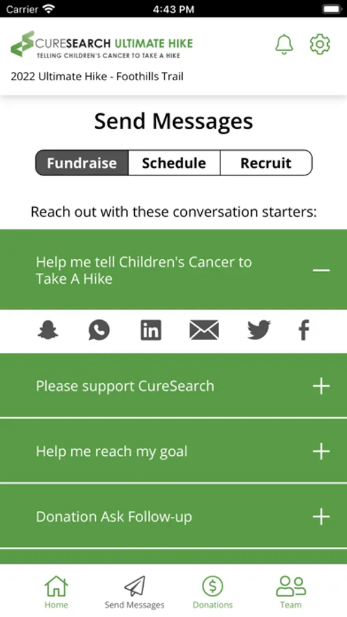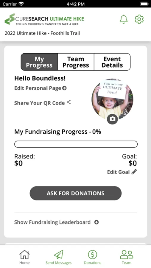 Fundraise on the go with your Ultimate Hike app. Update your webpage, send emails, and check your progress – all from the palm of your hand. The Ultimate Hike app is great for tracking your fundraising progress, and staying current on all Ultimate Hike news!