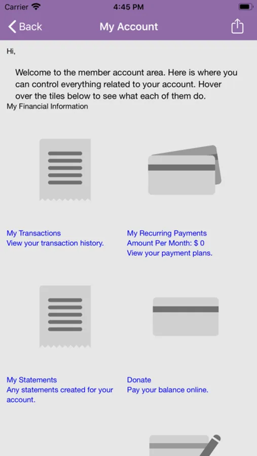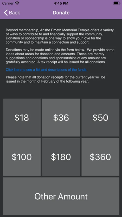 The app lets members view and pay their member dues online. It also allows them to update their profiles, accounts and other information. It enables general online donations.