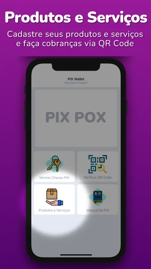 - Cadastro de Produtos e Serviços - Para realização Qr code de cobranças de forma rápida;