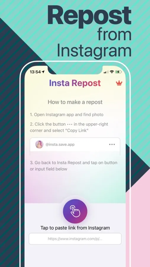 Repost any insta photo or video post you like.