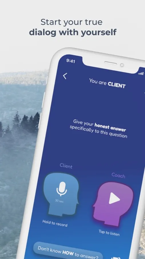 - AI-Guided Self-Talk: Alternate between Client and Coach roles using guided prompts to view your challenges from new perspectives.