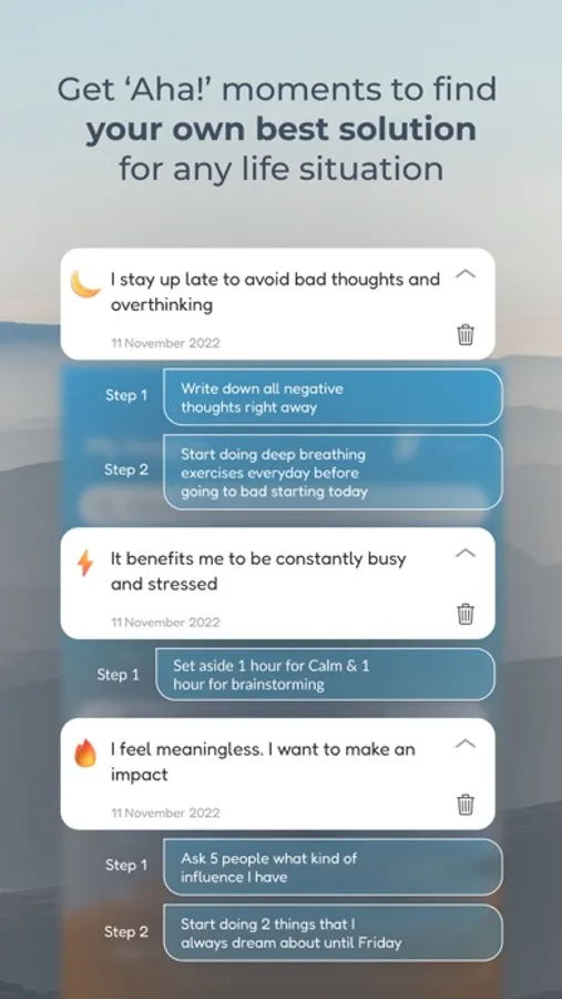 - AI Coach Interaction: Switch to your AI Coach, trained with insights from psychotherapy and coaching practices.
