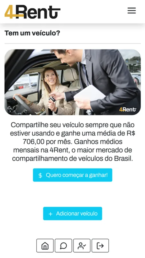 4Rent é o maior mercado de compartilhamento de veículos ponto a ponto do Brasil, onde você pode reservar qualquer veículo que quiser e onde quiser.