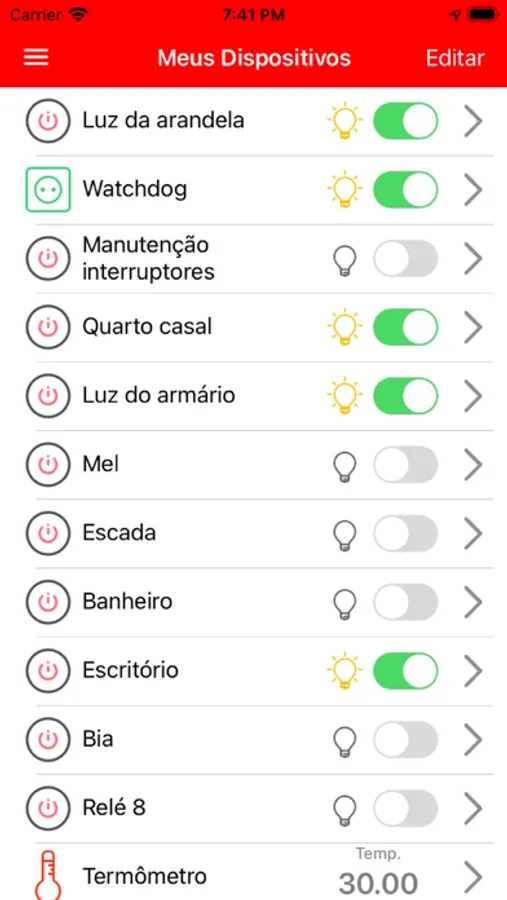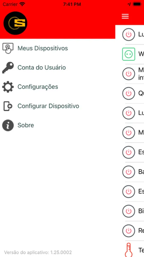 Aplicativo para controle dos dispositivos da Sensorialnet