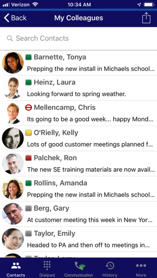 • Contact Search for other users within their personal contacts, corporate directory, and other connected systems