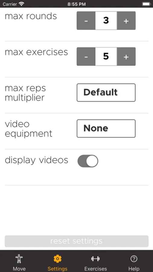 - Increase the settings for max rounds, reps, or exercises for longer workouts.