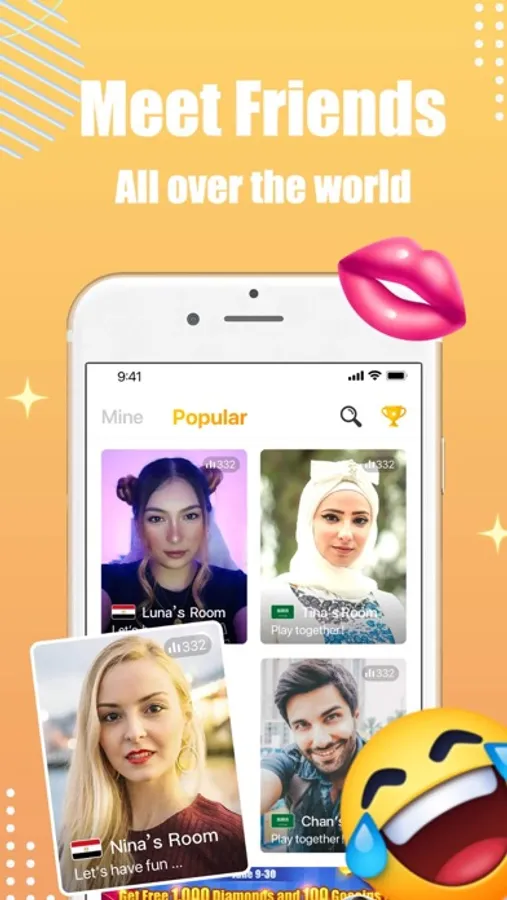 - Join the fun - listen to premium chat rooms and chat with premium users!