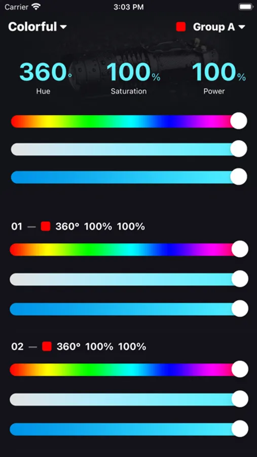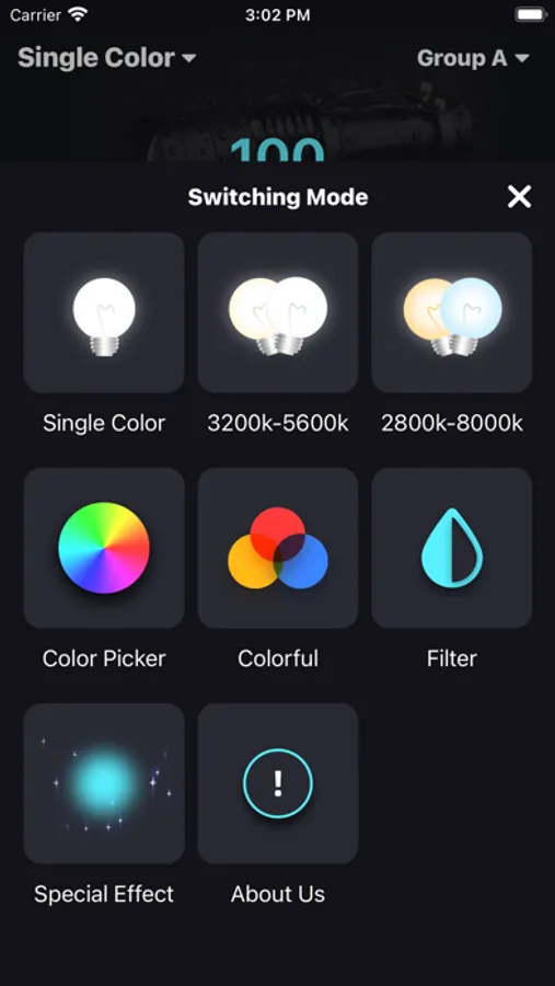 控制调节灯光亮度,色温,RGB切换,饱和度等