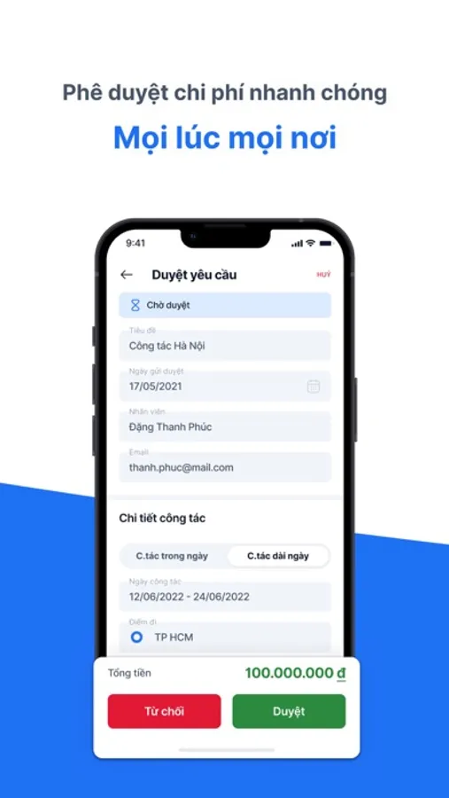 - Phê duyệt chi phí mọi lúc mọi nơi, tức thì qua mobile