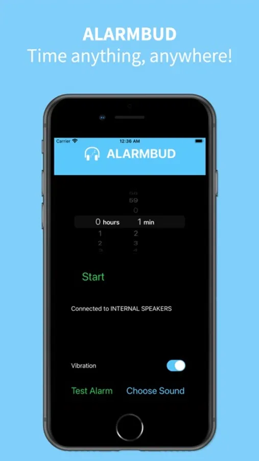 AlarmBud lets you to run a timer in any place without the sound disturbing others. Connects to wired headphones, bluetooth, or your device's internal speakers.
