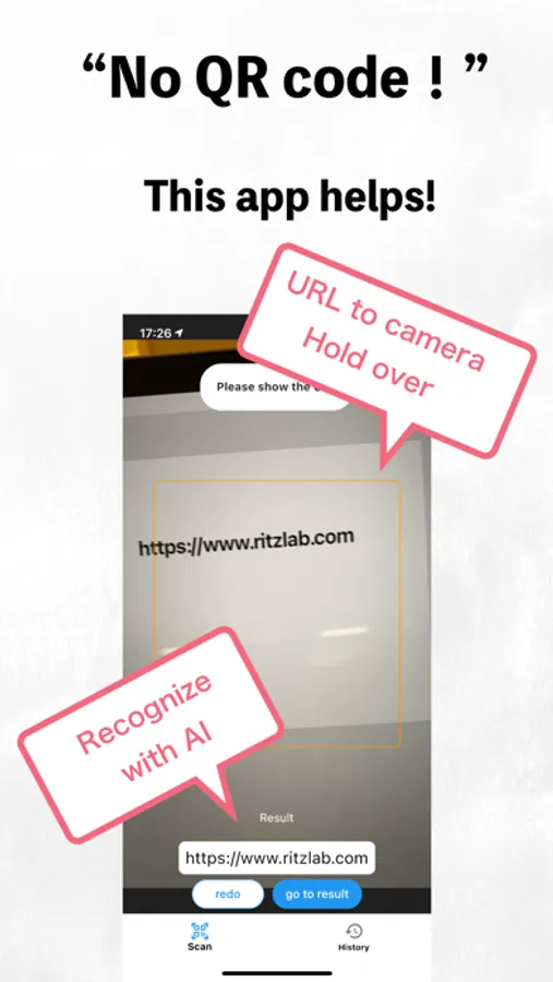 You can open the recognized URL in your browser, create a QR code image, and share it with everyone.