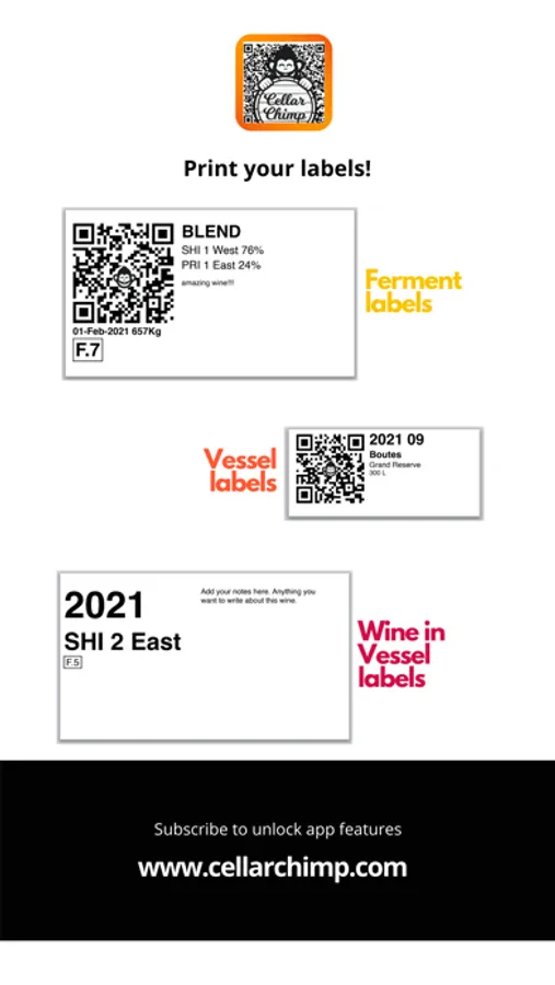 The Cellar Chimp app creates and reads QR code labels to identify every ferment and vessel. QR are codes are also used to shortcut data entry into your app. Point your phone or tablet’s camera at the QR label and everything the Chimp knows about that ferment or vessel is at your fingertips.