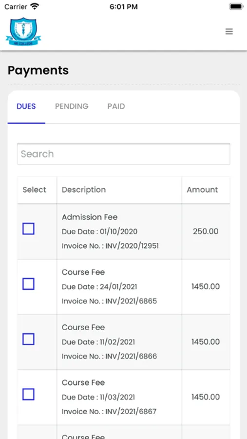 Payment: After doing the online payment, students can enter the details in respective invoices (Course Fees, Redo Fees, Re-sit Fees, Second Party Exam Center Fees etc.). Students can view their Monthly Due invoices under “DUES” tab and status of recently done payments under “PROCESSING” Tab and can view all their past payment history under “PAID” Tab. Monthly Payment receipts can be downloaded.