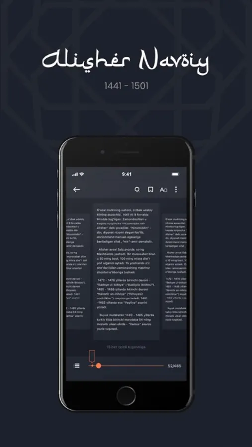 Mazkur ilova beshta muhim tashabbus doirasida Alisher Navoiyning boy merosini o‘rganishni keng targ‘ib etish maqsadida ishlab chiqildi. Ilovada Alisher Navoiyning Xamsa asari, g’azal va dostonlari hamda ibratli so‘zlari o‘rin olgan.