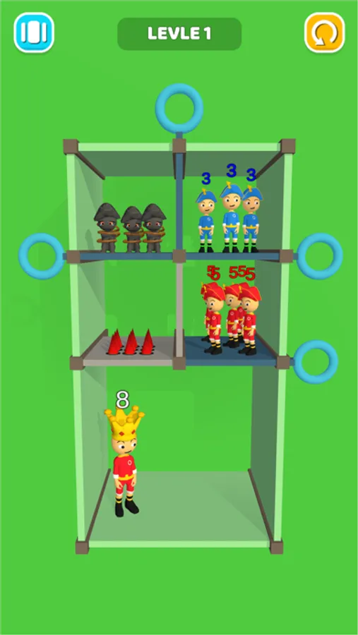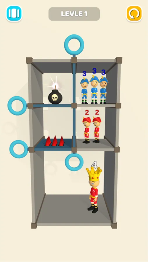 Make a strategy on the order of pulling pins. Win the final clash and beat the red giant!