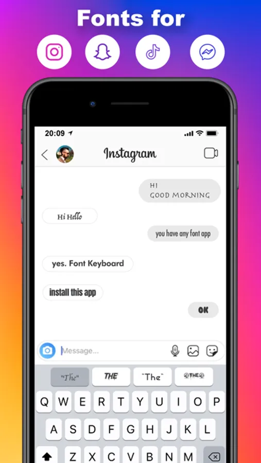Install the app and follow the 3 simple steps, then you are all set to use custom fonts in any social platform apps.
