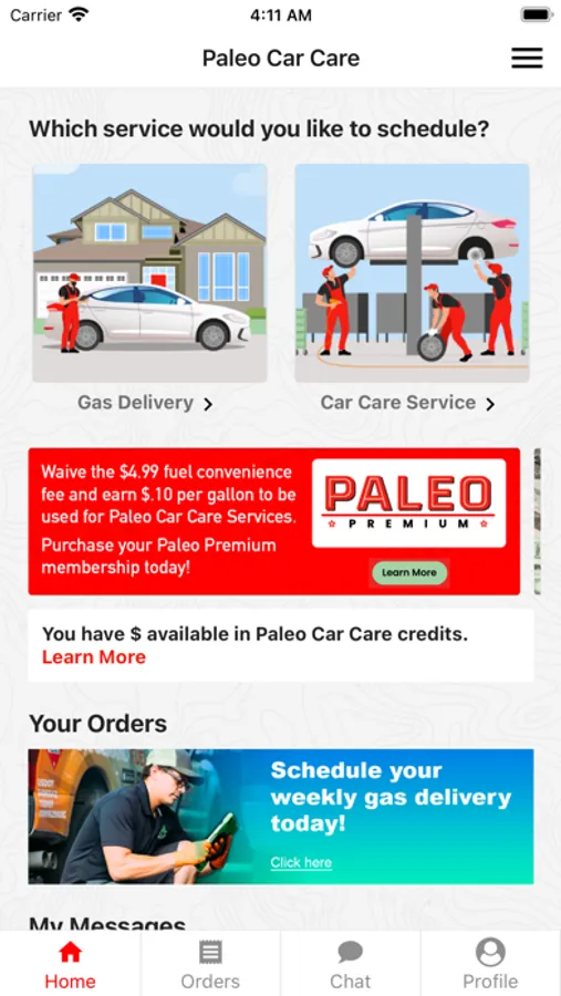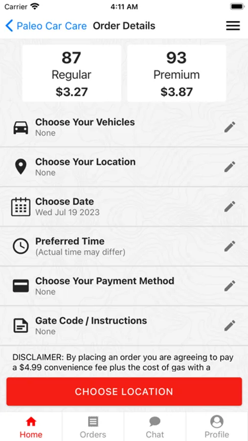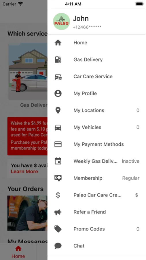 Setting up your Paleo Car Care account in the app is simple. Just log in with your phone number and a verification code. Tell us what type of fuel you need and where and then place an order. Its that simple! Our professionally trained Car Care Specialist will come to your location, fill the tank and perform a complimentary multi-point inspection. Access receipts as well as inspection results all within the app. You can also get an estimate and place a car repair order directly in the app.