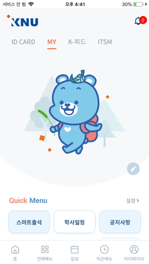 강원대학교 공식앱으로 모바일에 최적화된 K-Cloud 정보서비스, K-피드, 스마트출결 등 다양한 서비스를 제공하고 있습니다.