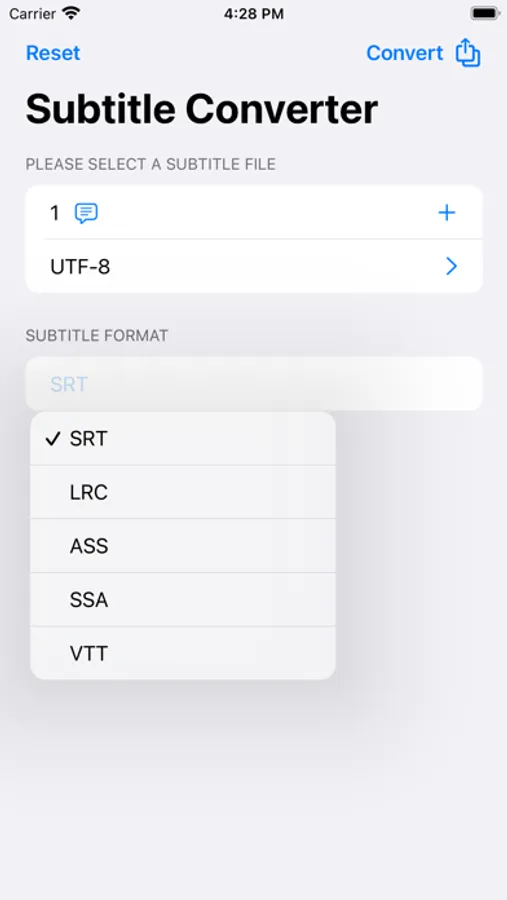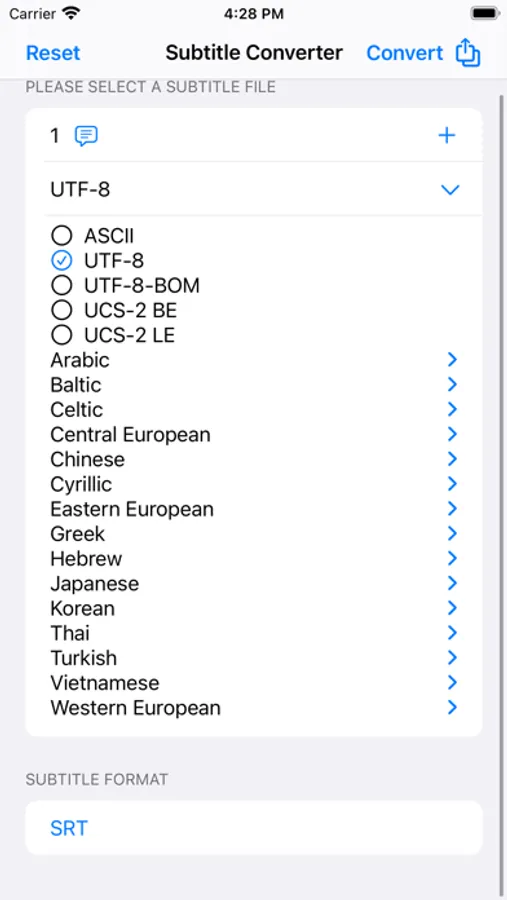 Automatic detection of file language encoding, easy conversion of subtitle formats SRT, LRC, ASS, SSA, VTT, support for all languages of the world and all language encoding formats.