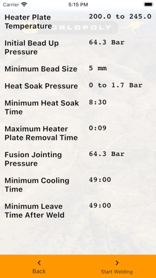 Calculate Parameters for Polyethylene Butt Fusion welding, and record welds.
