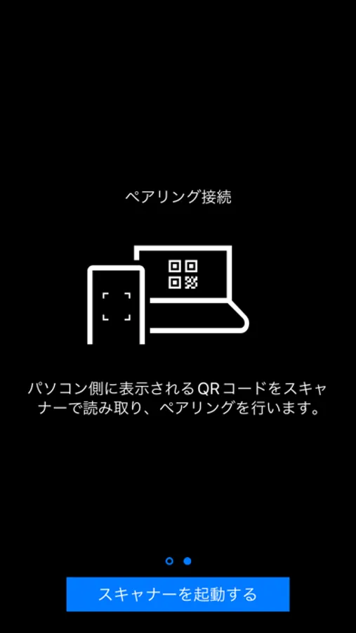 ・パソコンに表示されたQRコードをスマホのカメラに読み取らせるだけで接続OK。デバイス同士のペアリングやログイン操作など、難しい設定は全く必要ありません。