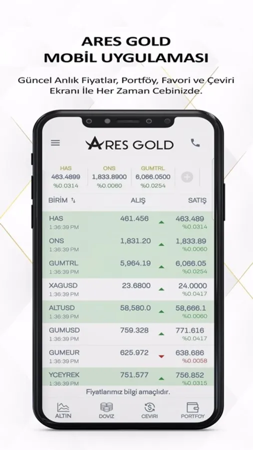 Aifa Global Bilişim Hizmetleri L.T.D 'nin sunduğu anlık fiyatlarla ile altın, döviz , parite ve ziynet ürünlerini görebildiğiniz , Pörtföy imkanı sunan, Çeviri ekranıyla kendi paritelerini oluşturabildiğiniz ve fiyatları anlık grafiklerle takip edebildiğiniz bir mobil uygulamadır.