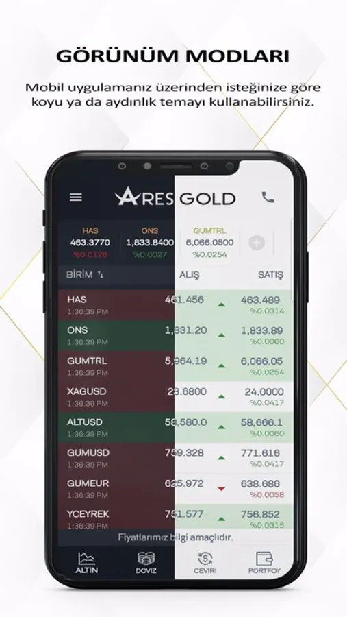 Mobil uygulamanız üzerinden isteğinize göre koyu ya da aydınlık temayı kullanabilirsiniz.