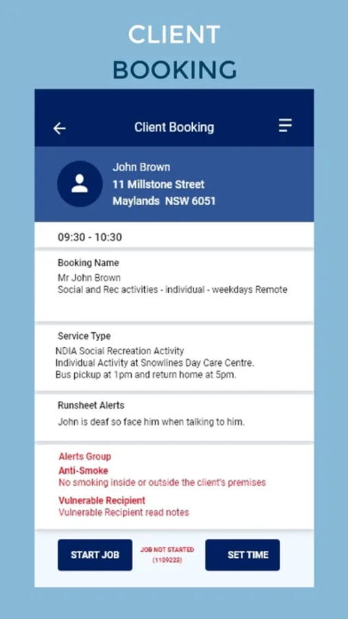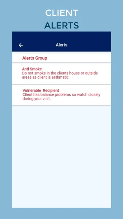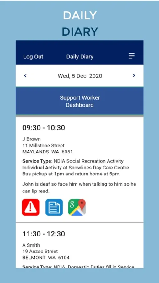• Display individual shift details, including worker and client alerts, special instructions, and shift specific task lists.
