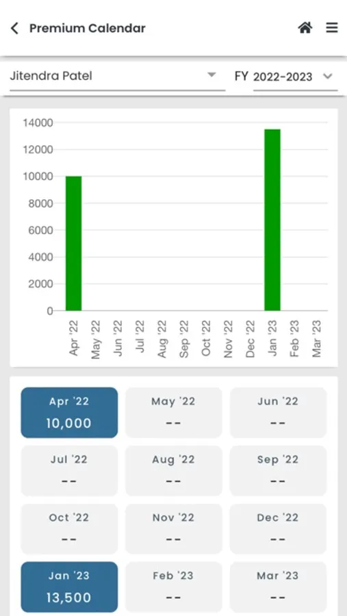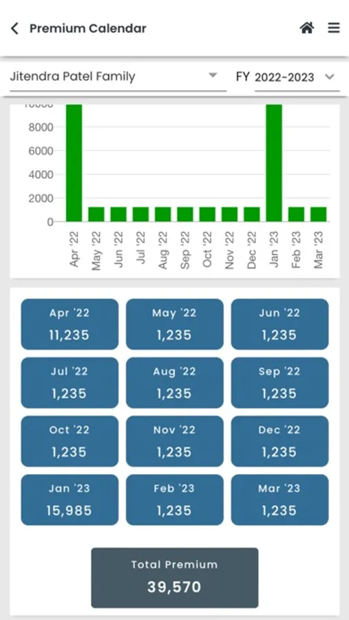 > Month-wise Premium Calendar of your Life as well as general insurance premiums