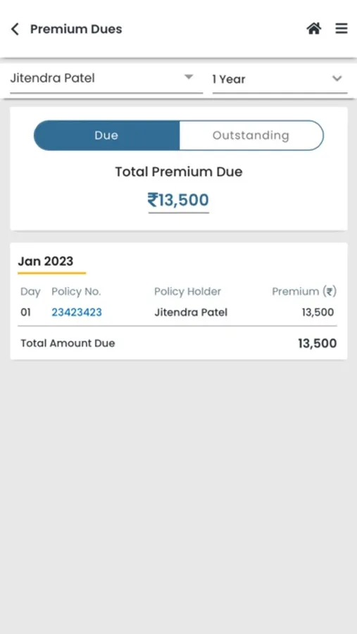 Your Premiums & Renewals due in the next 30 days or outstanding beyond due date