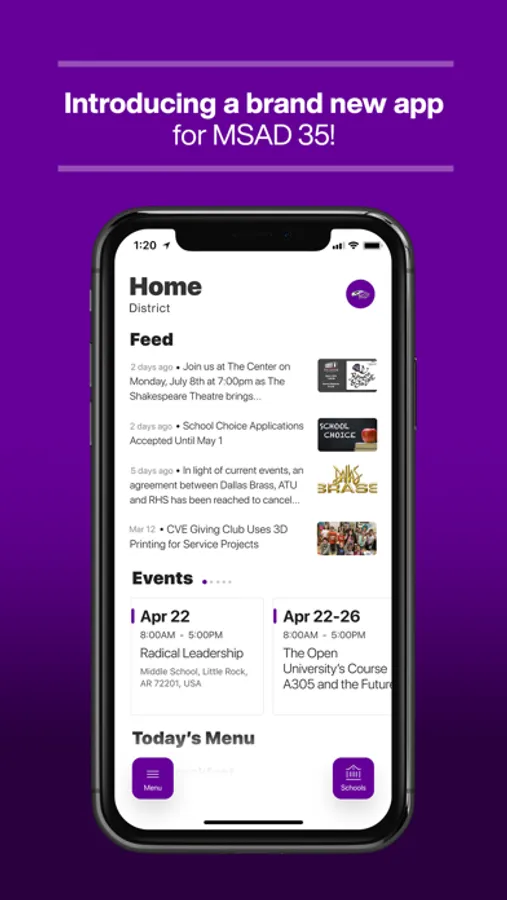 The event section shows a list of events throughout the district. Users can add an event to your calendar to share the event with friends and family with one tap.