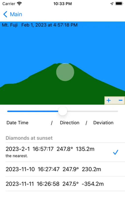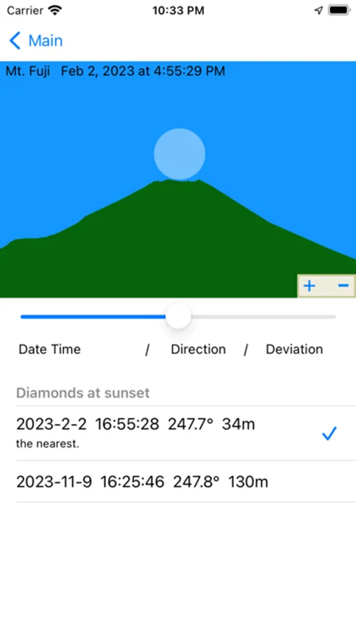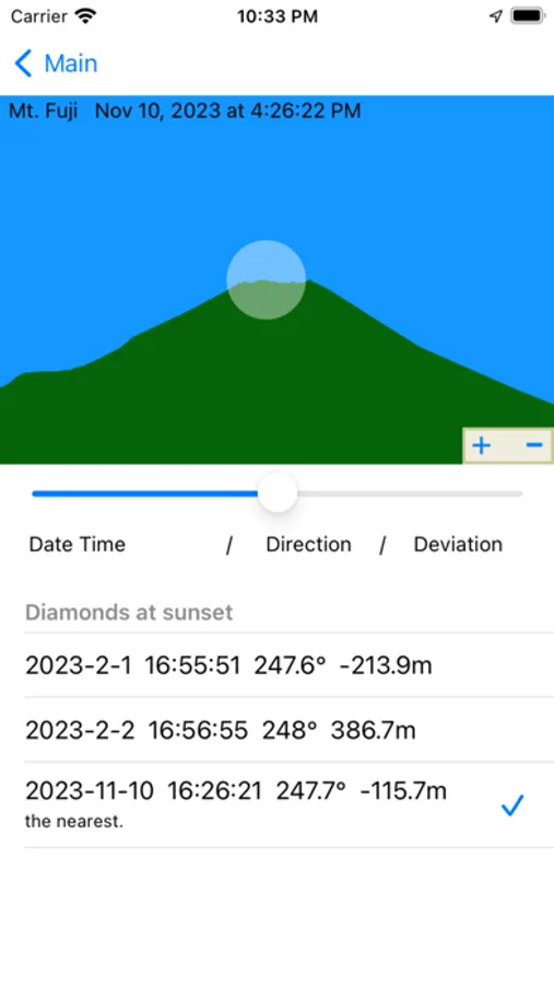 You can easily find the date and time of Diamond Fuji.