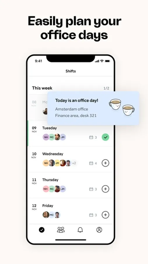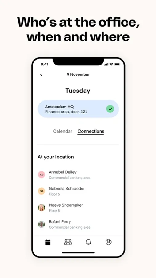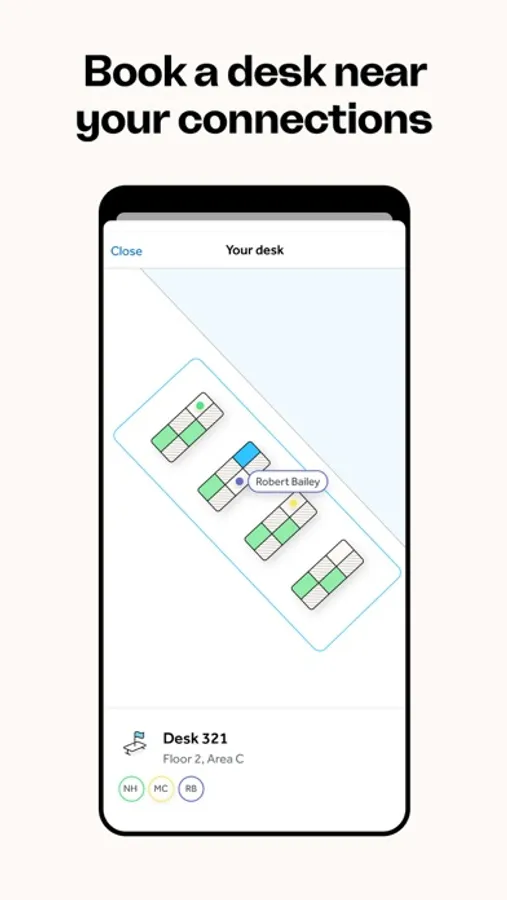 - Navigate workspaces with a custom map to easily interact with your colleagues