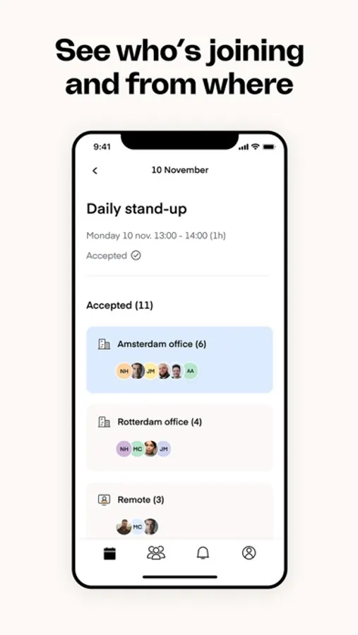 - Manage your hybrid meetings and see who'll be joining in-person or remotely