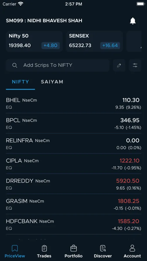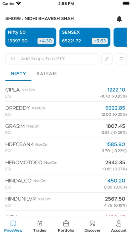 • Add up to 100 scrips per PriceView.
