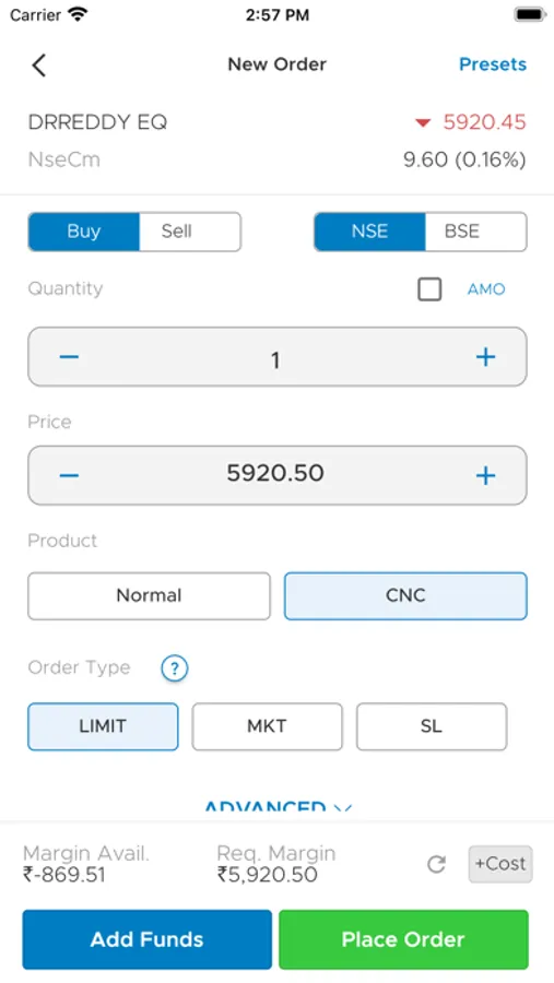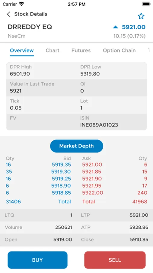 • Buy Sell directly from Option Chain.