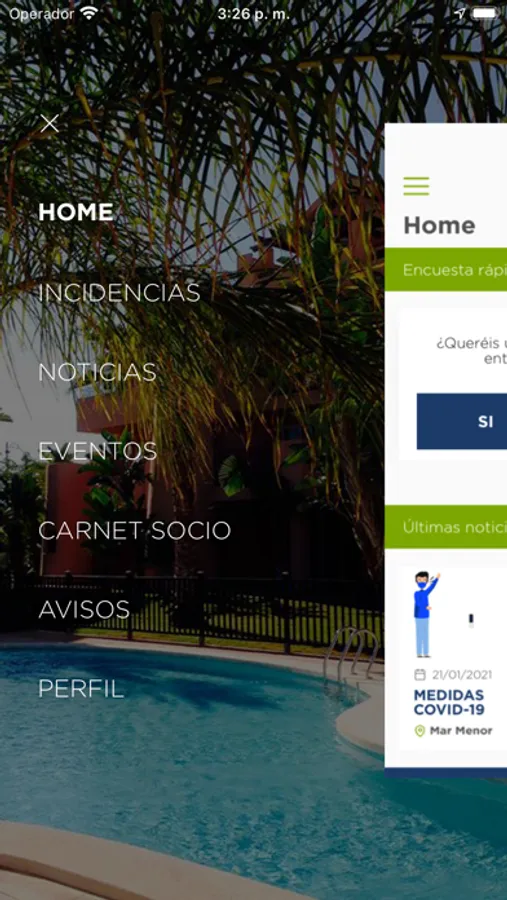 Eliges entre las opciones que ofrece la app: realizar encuesta, enviar incidencia, ver noticias o eventos.
