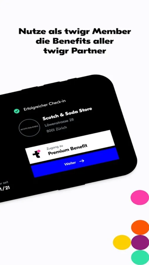 Nutze die twigr App, um bei über 300+ Partner von exklusiven Benefits zu profitieren. Infos zu allen Partnern und Benefits findest du auf der twigr Webseite (www.twigr.com).